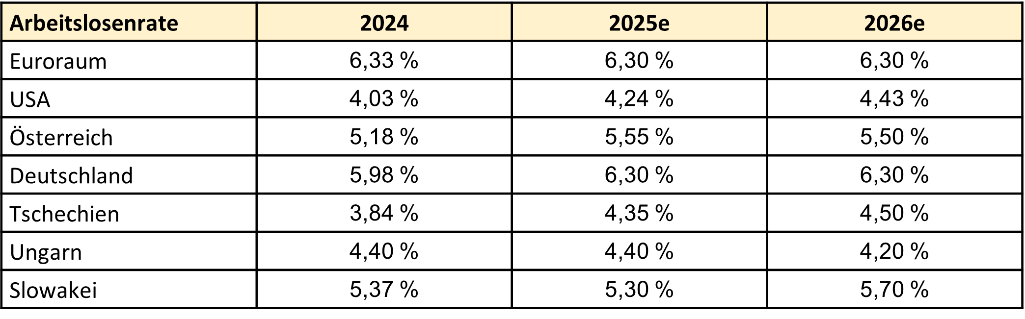 Hingegen liegt Österreichs Inflation mit 4,00 % im September deutlich höher als der Euroraum. Ausschlaggebend für den weiteren Zinspfad der EZB werden wohl vielmehr die Inflationsentwicklung der wichtigsten Industrienationen in der Eurozone einerseits sowie der Handelskonflikt mit den USA andererseits sein. Eine weitere Senkung des Zinsniveaus wird wohl frühestens erst im ersten Quartal 2026 auf uns zukommen. Kurzfristig erwarten wir keine erneuten Senkungen und wir rechnen mit einem stabilen Leitzins.
