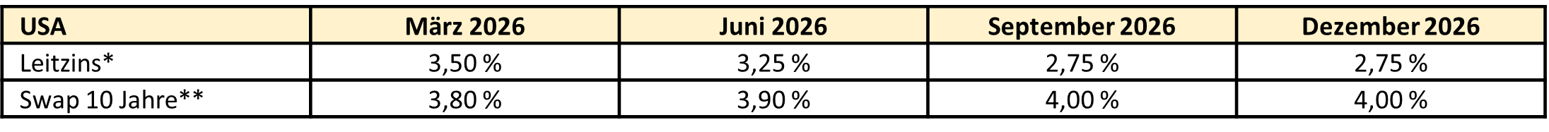 Trotz erhöhter Spannungen durch Handelskonflikte und geopolitischer Unsicherheiten dürfte die US-Wirtschaft im Jahr 2026 mit rund 2,5 % ein deutlich besseres Wachstum als Europa und der Euroraum erreichen. Der US-Arbeitsmarkt zeigte sich trotz Trumps chaotischer Wirtschaftspolitik zwar grundsätzlich resilient, sendete aber in den letzten Monaten auch immer wieder gemischte Signale: Während die Arbeitslosenquote mit 4,6 % im November 2025 und fast 8 Mio. Arbeitslosen den höchsten Stand seit über 4 Jahren erreichte, gab es dieses Jahr im Jänner wieder einen Rückgang auf 4,3 %. Überraschende Rückgänge aber auch deutliche Anstiege bei den Erstanträgen auf Arbeitslosenhilfe deuten auf eine hohe Dynamik am Arbeitsmarkt hin. Die Inflation wird voraussichtlich weiter sinken und sich dem Ziel der Fed von 2 % allmählich annähern. Abgeschwächte Wachstumsaussichten - geschuldet u.a. Trumps Handelskonflikten und Zöllen - dürften die Tore für weitere schrittweise geldpolitische Lockerungen durch die Zentralbank offenhalten. Wir erwarten bis Mitte des Jahres dennoch eine vorsichtige und datenorientierte Vorgehensweise durch die Fed.